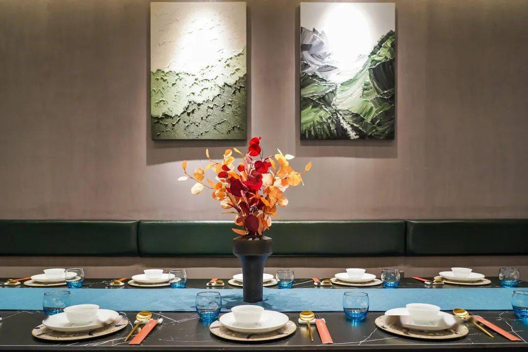 我们今日寻访的这家新店除散座厅外,还设有3个圆桌包房和1个半开放式长桌包房,整体以淡灰色仿木纹为基底,灰质色调渐次铺陈,温馨与质感并存。