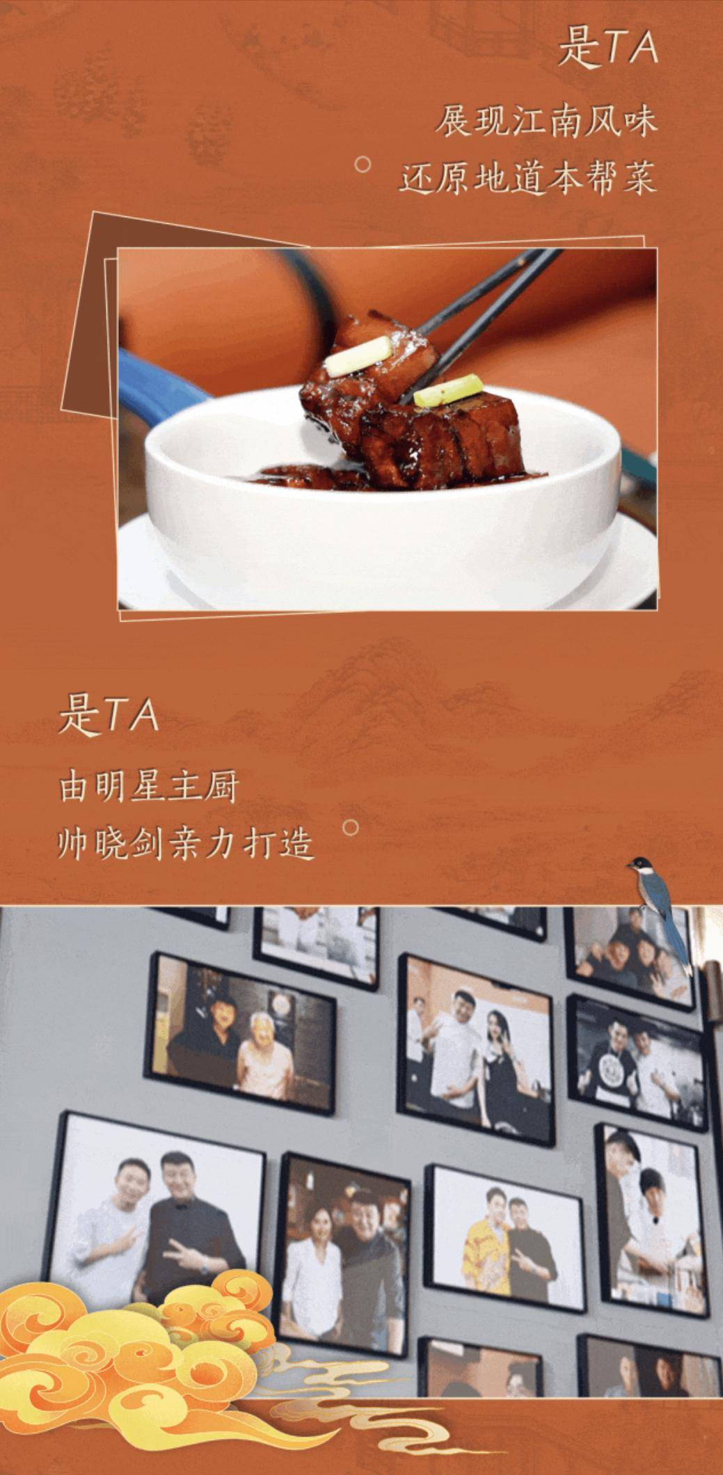 帅帅精致江南味可是大有来头~2020年,烹饪界的巨星,明星大厨帅晓剑携手创立了“帅帅”品牌,为广大食客带来独具特色的地道上海本帮菜。